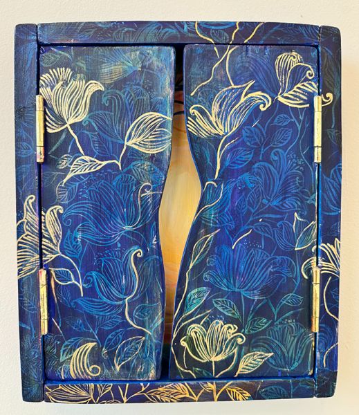 acrylic, mixed media on board 12 x 10 x 1.75 in